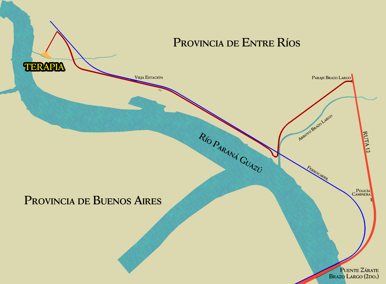 Luego de cruzar el segundo puente del complejo Zárate Brazo Largo y de pasar el puesto caminero sobre la RN12, se llega al paraje Zárate Brazo Largo en el que hay varios comercios y negocios.